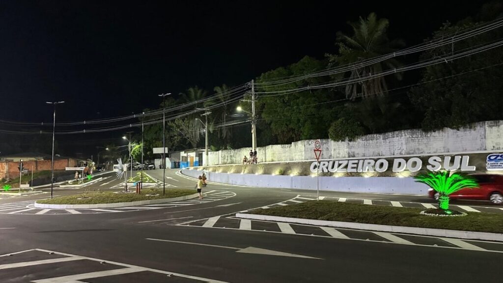 Cruzeiro do Sul, AC – A população de Cruzeiro do Sul recebeu na noite desta quarta-feira (27) uma nova rotatória em frente ao Complexo Esportivo, uma realização do Governo do Estado em parceria com a Prefeitura. A inauguração ocorreu durante a abertura do Festival da Farinha e contou com a presença da presidente do Departamento Estadual de Trânsito (Detran), Tainara Martins.