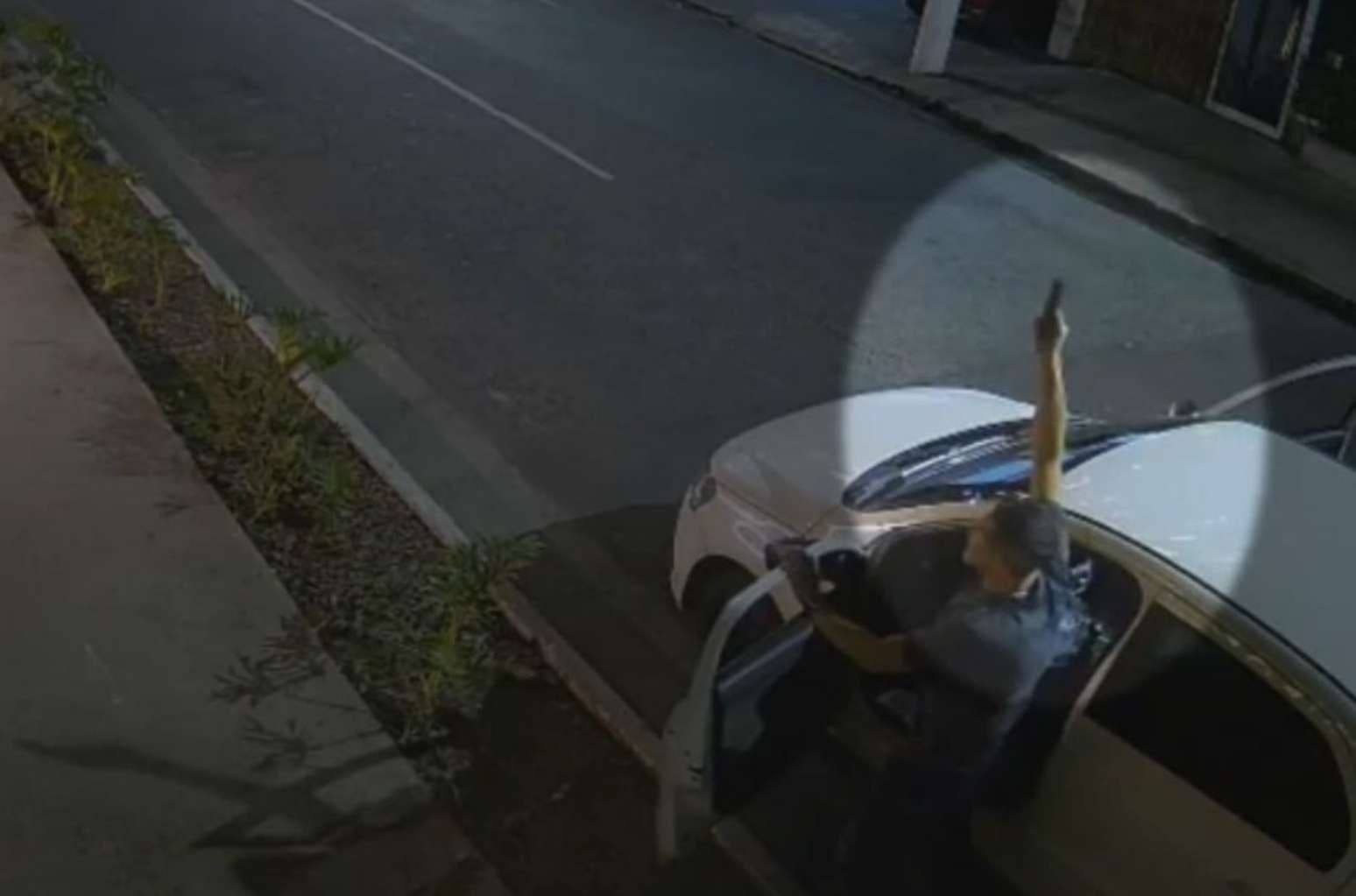 Imagens de câmeras de monitoramento que circulam pelas redes sociais mostram o momento em que o agente para o carro que dirigia na Rua Leopoldo de Couto Magalhães Júnior. Ele desce do carro e passa a urinar no meio da calçada.