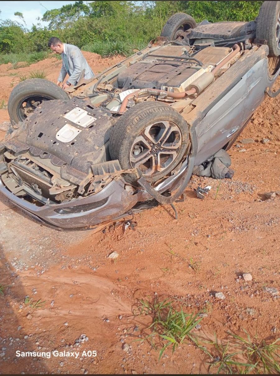 Promotor de Justiça capota carro na Estrada da Variante e escapa com ferimentos leves