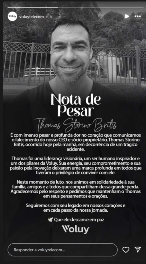 A Voluy publicou nota de pesar sobre o falecimento do CEO, destacando sua trajetória profissional e se solidarizando com a família. “Uma liderança visionária, um ser humano inspirador e um dos pilares da Voluy”, diz a nota.