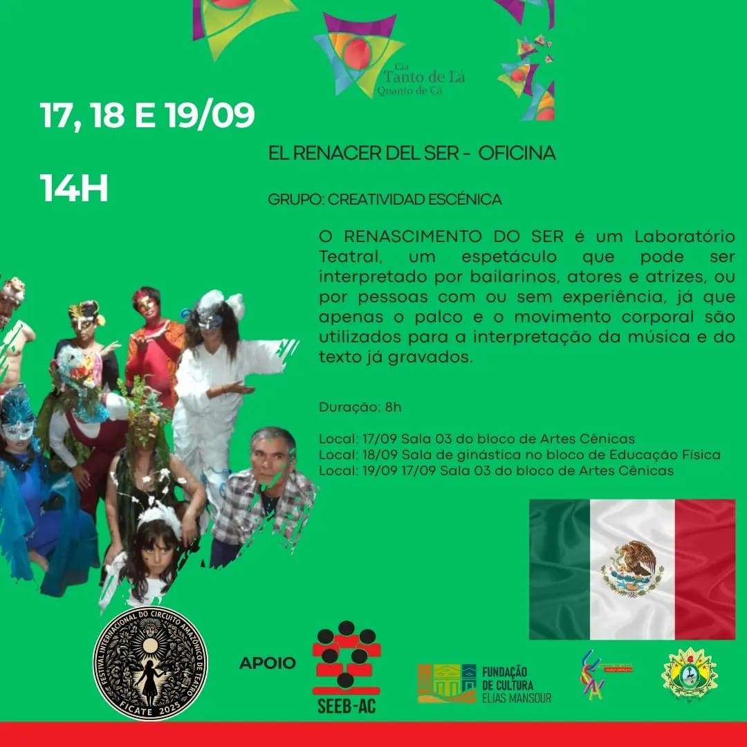 Na edição de 2025, o festival reunirá grupos teatrais do México, Chile, Argentina, Equador, Bolívia e Brasil, apresentando propostas artísticas que dialogam com temas sociais, políticos e identitários urgentes. Ao reafirmar o teatro como um espaço de expressão e resistência cultural, o Ficate celebra a riqueza da Pan-Amazônia e fortalece os laços entre os povos da região.