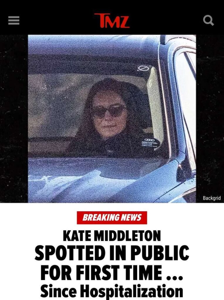 A princesa de Gales, Kate Middleton, foi vista pela primeira vez desde a sua hospitalização no início de janeiro e depois de várias teorias da conspiração que surgiram na internet. O site TMZ compartilhou uma foto de Kate no banco do passageiro em um carro, que é dirigido por sua mãe, Carole, nesta segunda-feira, 4. A imagem foi tirada pela agência Backgrid, próximo ao Castelo de Windsor, no Reino Unido.