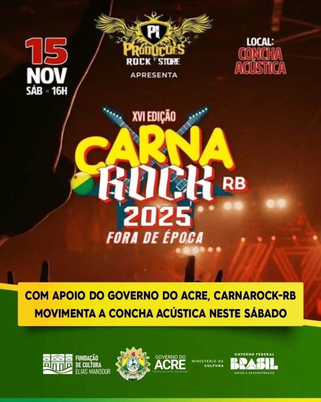 Rio Branco, AC – A Concha Acústica de Rio Branco se prepara para tremer neste sábado, 15, com a 16ª edição do Carnarock-RB, um evento que se consagrou como um dos pilares da cena rock no Acre. A partir das 16 horas, o festival promete uma imersão no universo do rock, reunindo fãs e bandas locais em uma grande celebração musical.