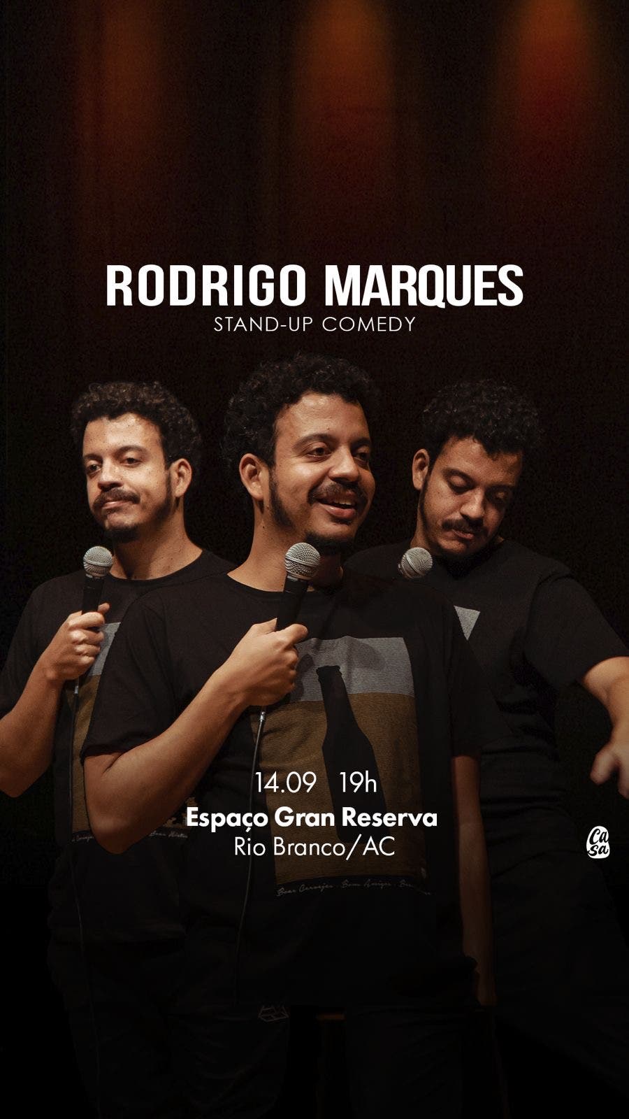 O comediante Rodrigo Marques, conhecido por seu humor ácido e inteligente, está de volta ao Acre após seis anos para uma apresentação no dia 14 de setembro, no Gran Reserva, em Rio Branco.