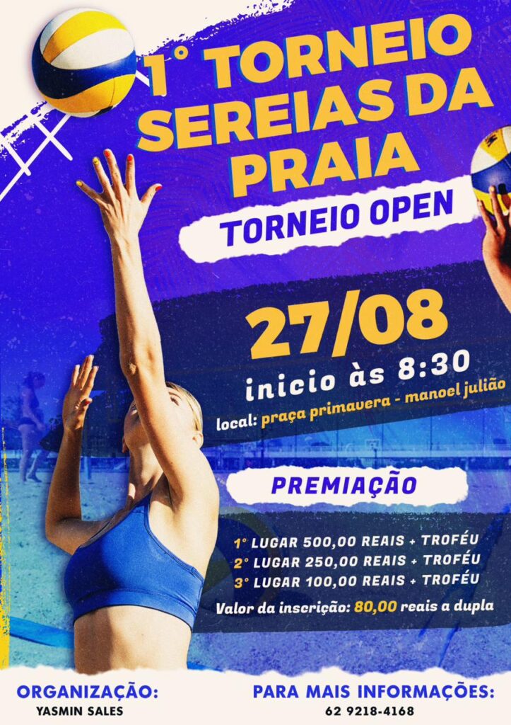 Com o objetivo de oferecer um momento de lazer para as amantes do vôlei, a atleta e dançarina Yasmin Sales decidiu criar o 1º Torneio Sereias da Praia. A competição é voltada para o grupo feminino e mulheres trans podem se inscrever.