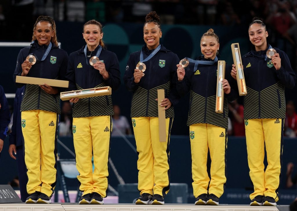 A equipe feminina conquistou a medalha de bronze na final por equipes da ginástica artística nesta terça-feira, 30, nos Jogos Olímpicos de Paris, na Arena Bercy. O pódio na categoria é algo inédito para o Brasil.