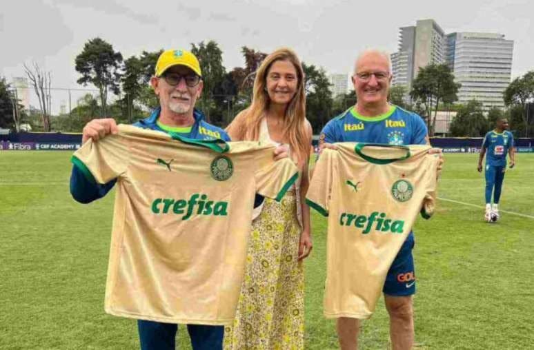Leila presenteia Dorival com camisa do Palmeiras e diz que CT está ‘de portas abertas’ à Seleção