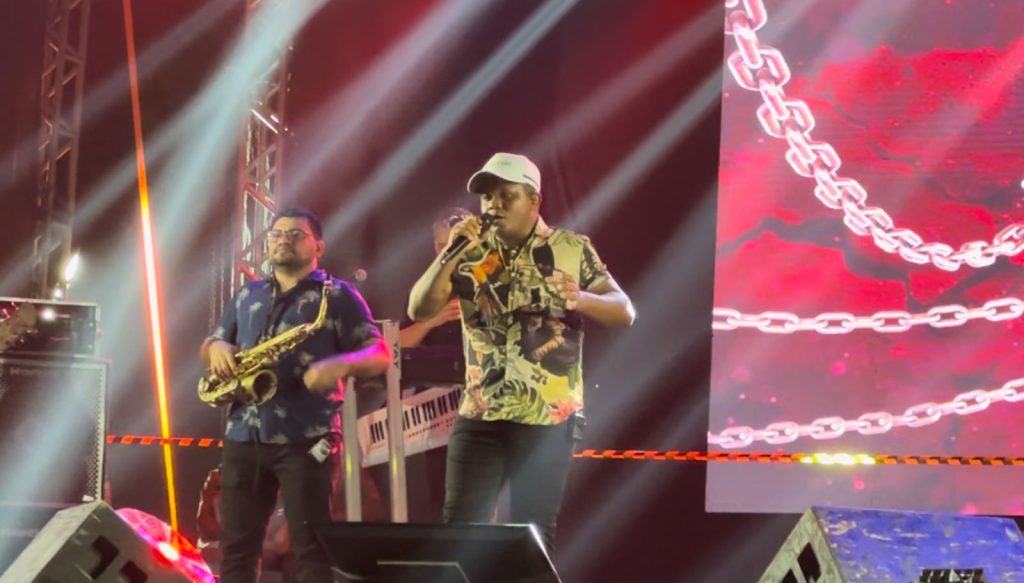 Biguinho subiu ao palco por volta das 22h50, já iniciando com uma queima de fogos que empolgou o público. Mesmo com a plateia ainda se aproximando do palco no início da apresentação, Biguinho Sensação conseguiu agitar a galera, entregando o melhor do seu repertório e fazendo várias pessoas dançarem.