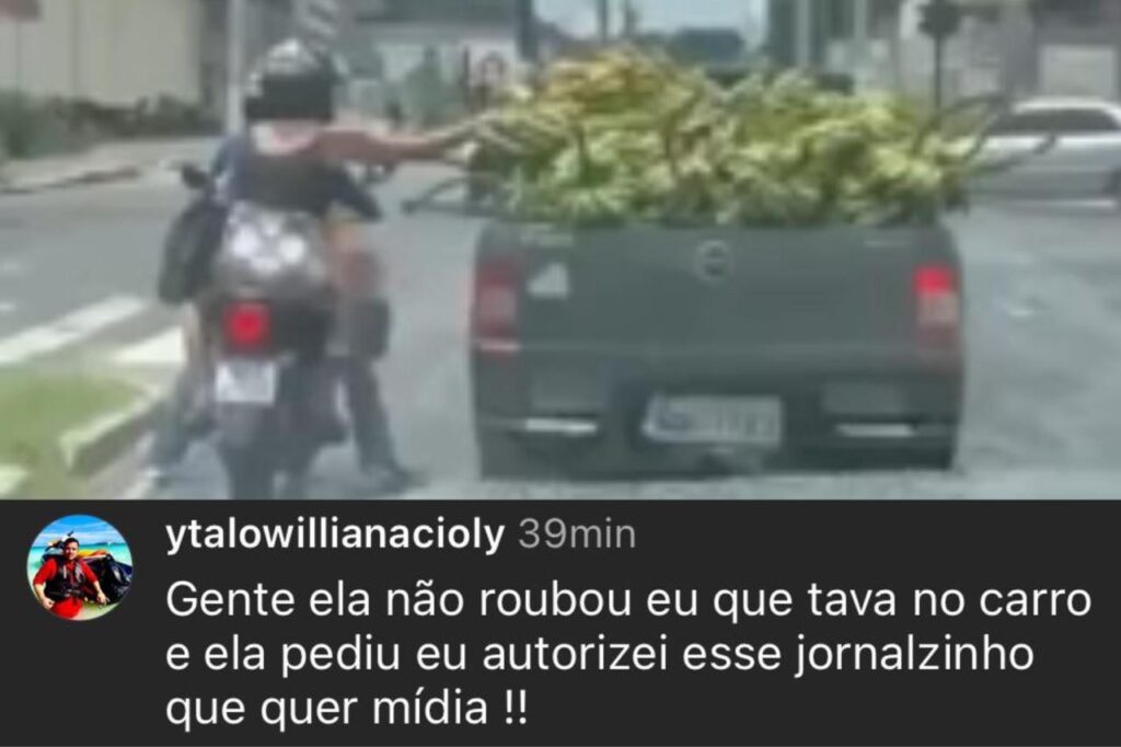 “Gente, ela não roubou nada eu tava no carro e ela pediu. Eu autorizei, esse jornalzinho que quer mídia”, disse o homem, que foi elogiado pelos internautas pela boa ação.