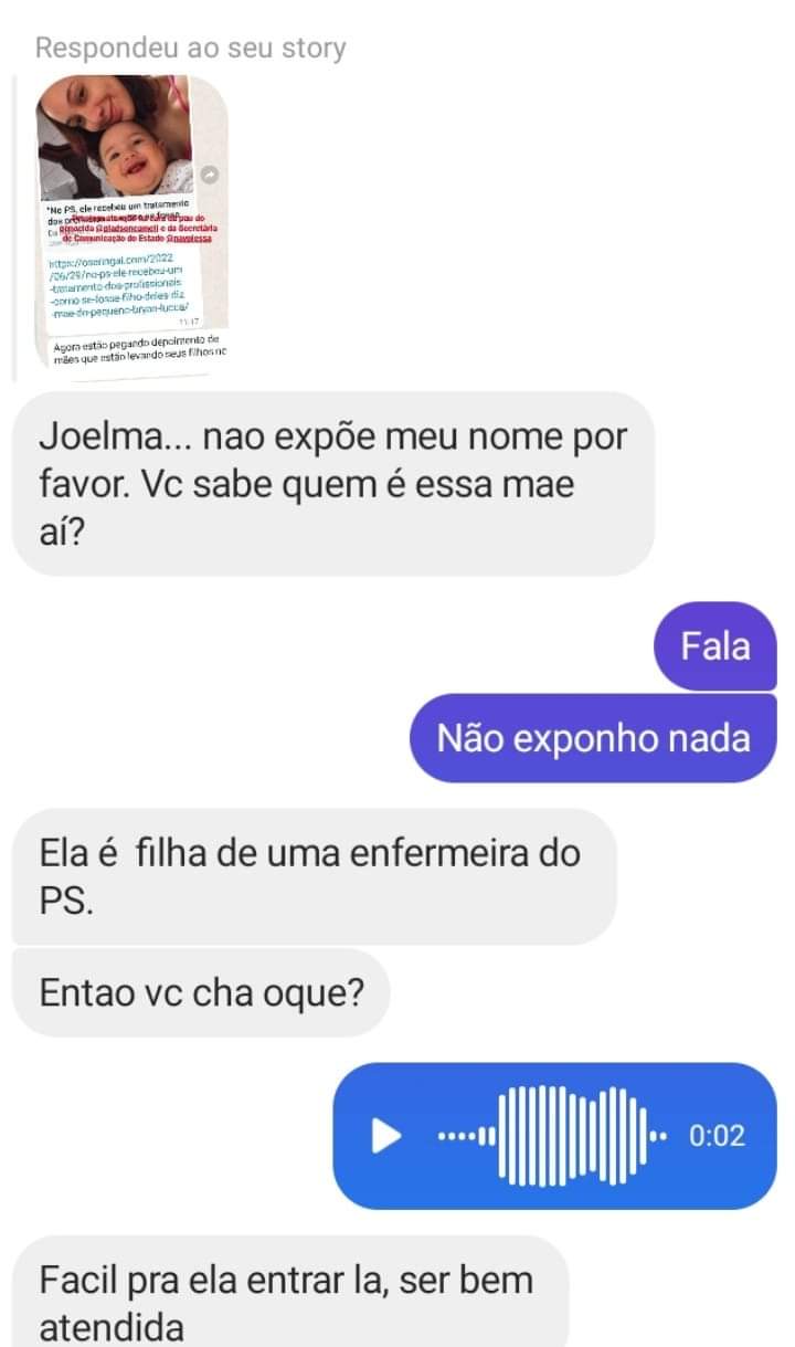 Após matéria vinculada no site do governo sobre uma mãe relatando o bom tratamento que o filho recebeu no Pronto-Socorro de Rio Branco, Joelma Dantas, mãe do pequeno Théo, que faleceu no início do mês enquanto aguardava por um leito de Unidade de Tratamento Intensivo (UTI), foi às redes socias e disse que a moça é filha de uma funcionária da unidade de saúde.
