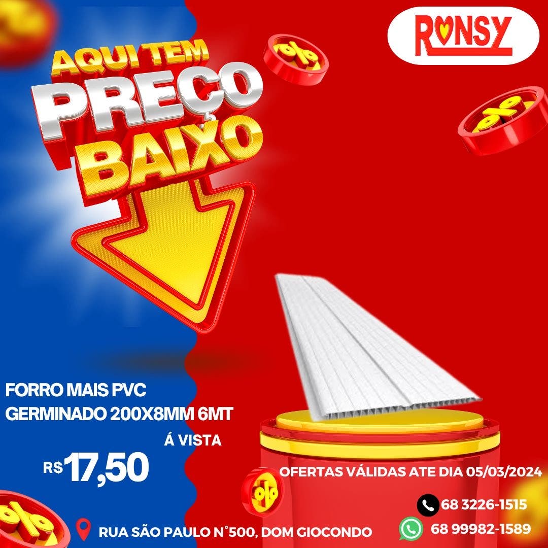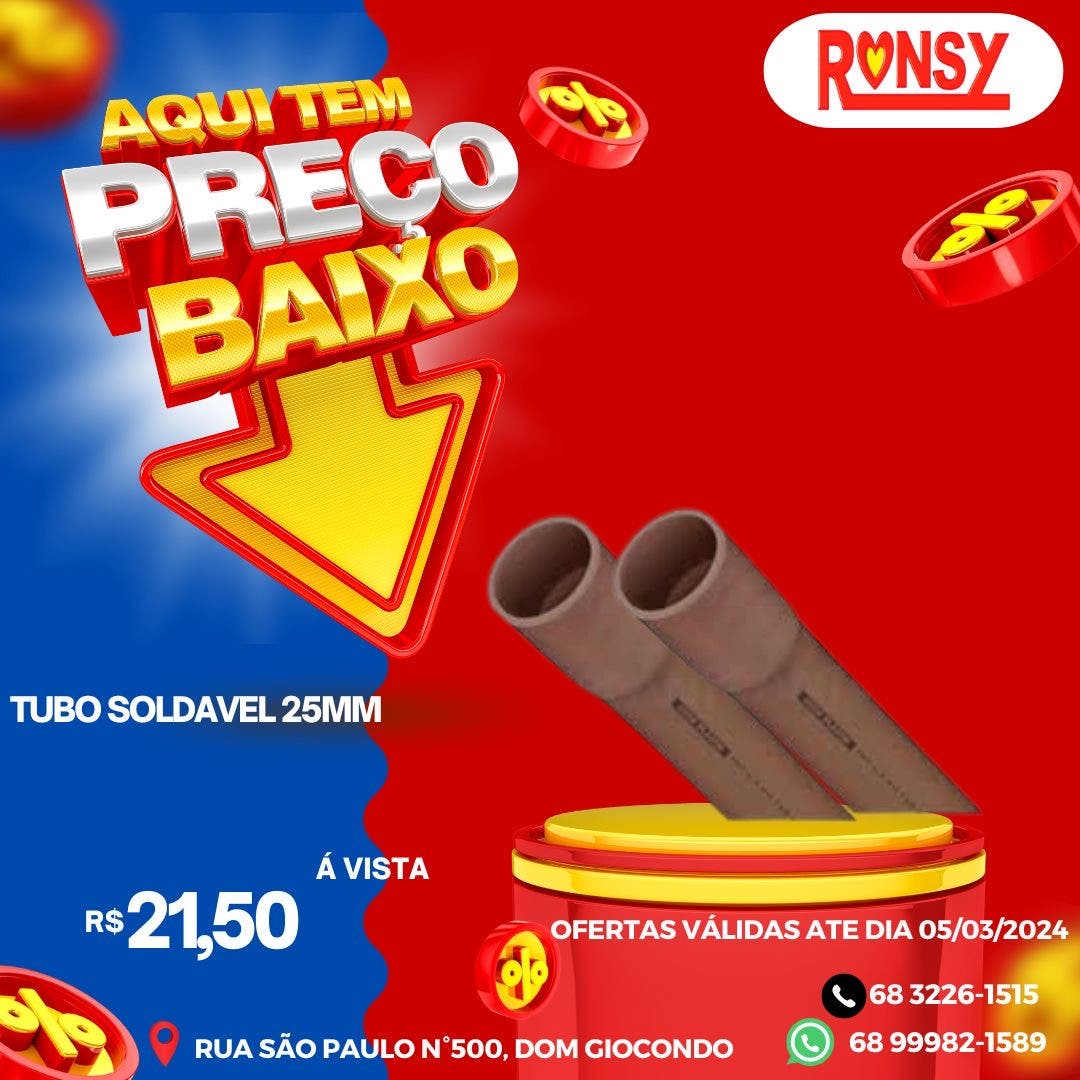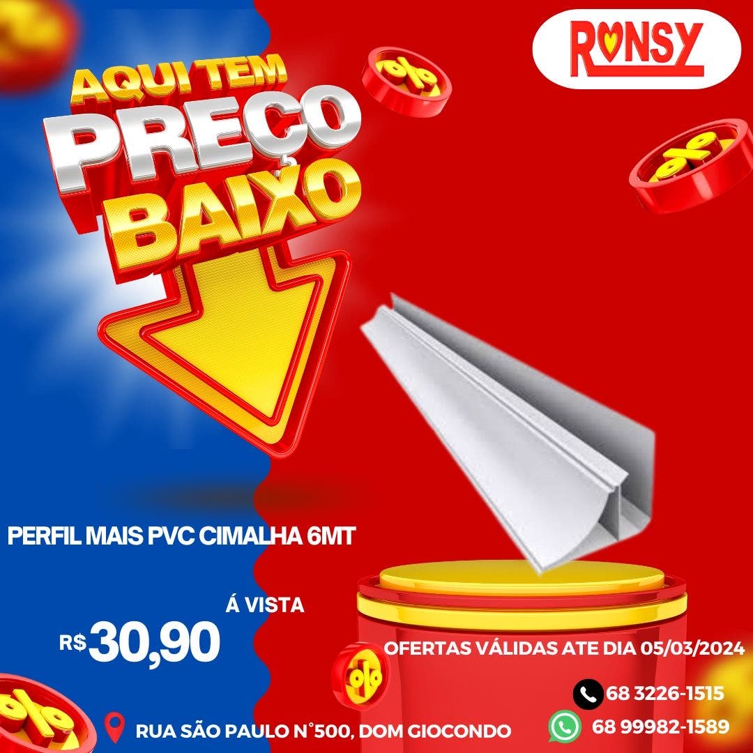 Quer material com qualidade e o menor preço da cidade? Vem pra Ronsy.