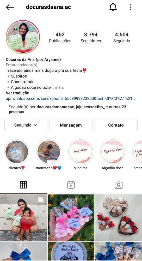 Aryanne Maysa da Silva Nascimento, 34 anos, há dois anos, quando sua primeira filha tinha dois meses de nascida, antes de engravidar ela conta que trabalhava em uma financeira, mas já estava em busca de algo melhor, foi quando descobriu que estava grávida. Preocupada, por ver a situação das colegas que tinham filhos e trabalhavam, a jovem disse que não queria isso para ela. No entanto, até aquele momento, não pensava em trabalhar com doces.