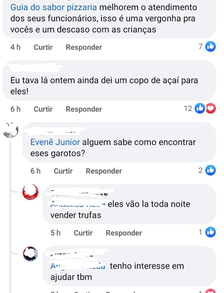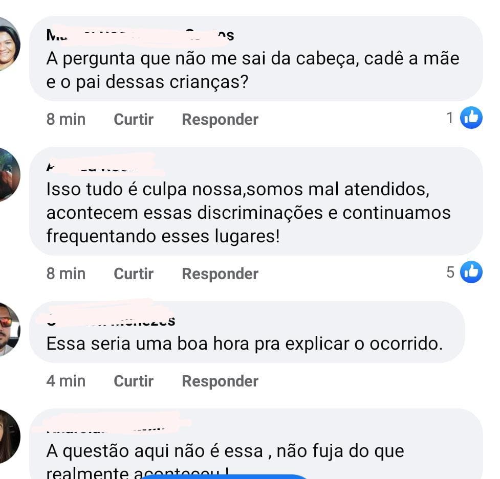 Antes da nota, responsáveis usaram as redes socias para dizer que “enquanto vocês ficam aí criticando, sem saber do ocorrido, nossa pizzaria continua sendo prestigiada”. A publicação não foi bem vista por internautas que disparam os mais diversos comentários, principalmente depois da publicação de uma jornalista que afirmou ter ido ao local com o filho, um dia após o ocorrido, e ninguém questionou para que ele estivesse com acompanhante. Veja os comentários: