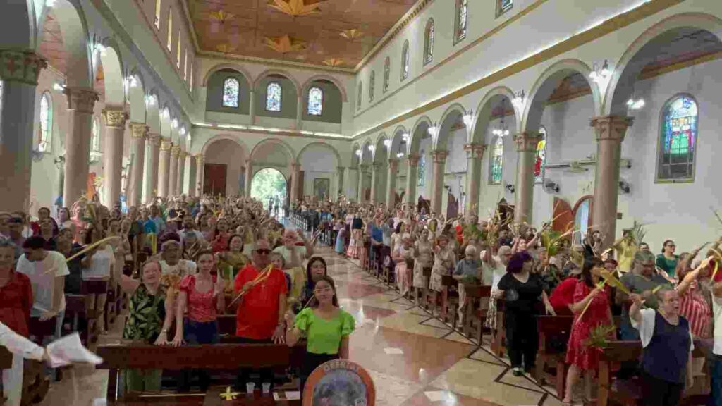 A Catedral Nossa Senhora de Nazaré, em Rio Branco, recebeu centenas de fiéis na manhã deste domingo (13) para a celebração do Domingo de Ramos, marcando o início da Semana Santa. A missa das 6h da manhã foi apenas a primeira de uma série de celebrações ao longo do dia, com horários adicionais às 8h, 17h e 19h. A celebração matutina foi transmitida pela Rádio Difusora Acreana.