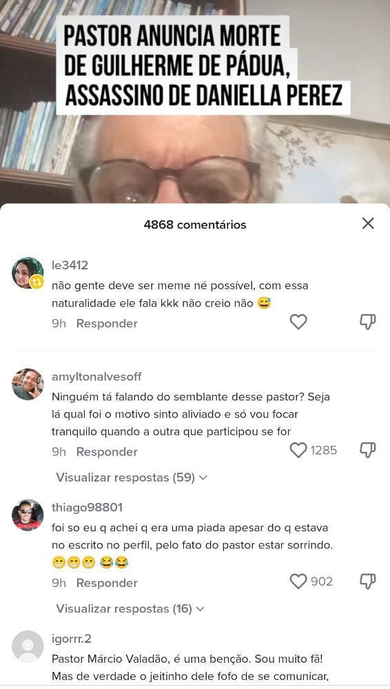 “Ninguém tá falando do semblante desse pastor?”, escreveu um internauta. “Não é possível, deve ser meme, com essa naturalidade ele fala”, comentou outra. “Pastor Marcos Valadão é uma benção. Sou muito fã! Mas o jeitinho dele fofo de se comunicar pareceu que ele tava rindo da morte”, disse a internauta.