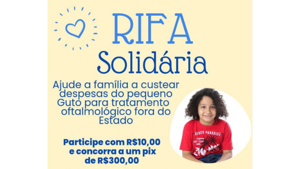 A mãe de Guto Mathias Gadelha Soares, 9 anos, a educadora física Luanna Kelly Silva Gadelha, 39 anos, iniciou uma campanha de uma rifa solidária para custear o tratamento do filho em São Paulo, no início de fevereiro de 2024.