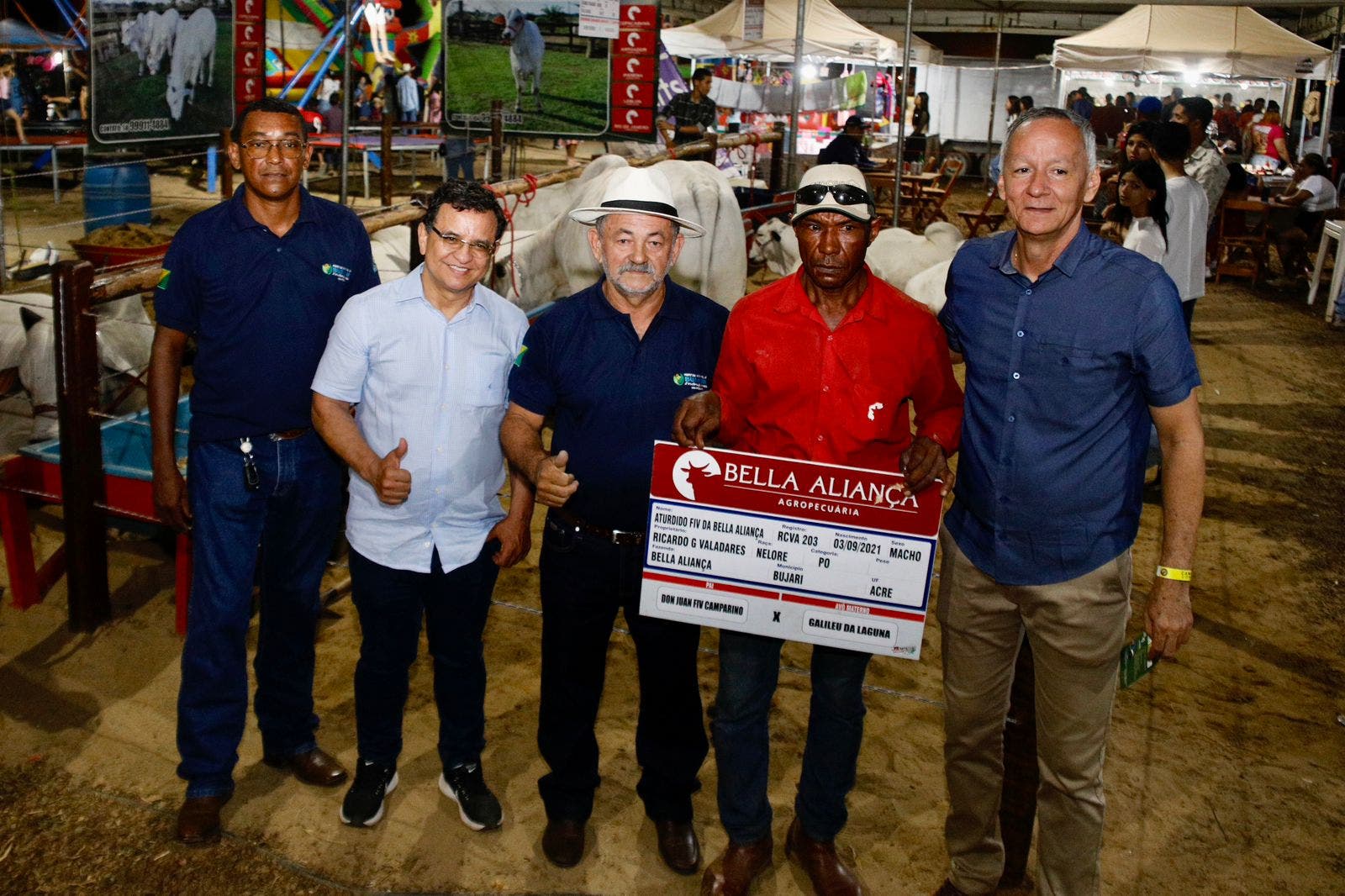 Gonzaga visitou o stand da Fazenda Bela Aliança, que levou para a feira touros de elite da raça PO. Animais que pesam mais de 700 kg. Durante a feira a empresa negociou mais de R$ 100 mil com a venda de unidades.