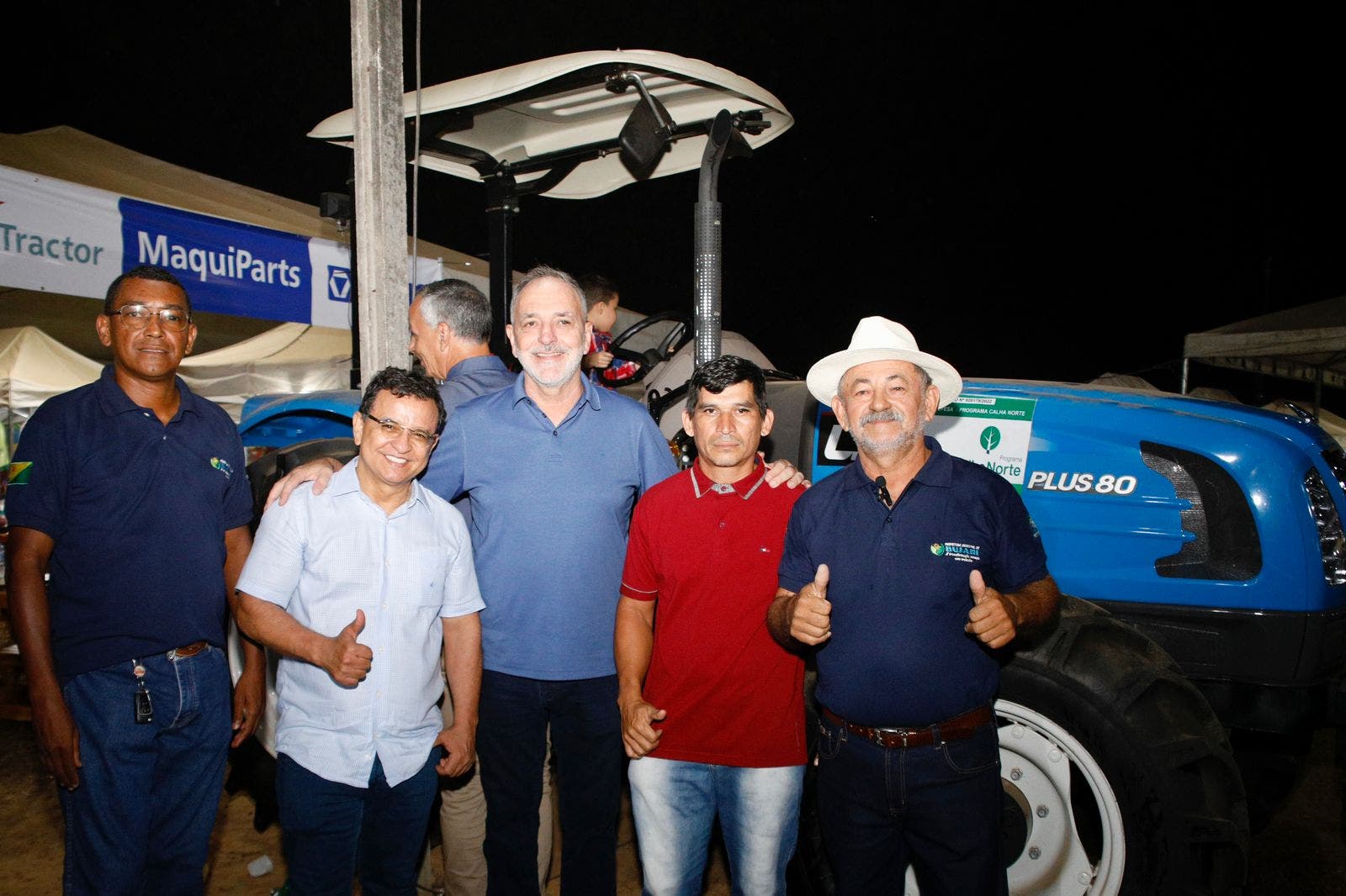Acompanhado pelo secretário de Agricultura, Luís Tchê, Luiz Gonzaga foi recebido pelo prefeito João Padeiro e acompanhou a entrega de dois tratores de arado que o município repassou para as Associações rurais Espinhara e Linha Nova.