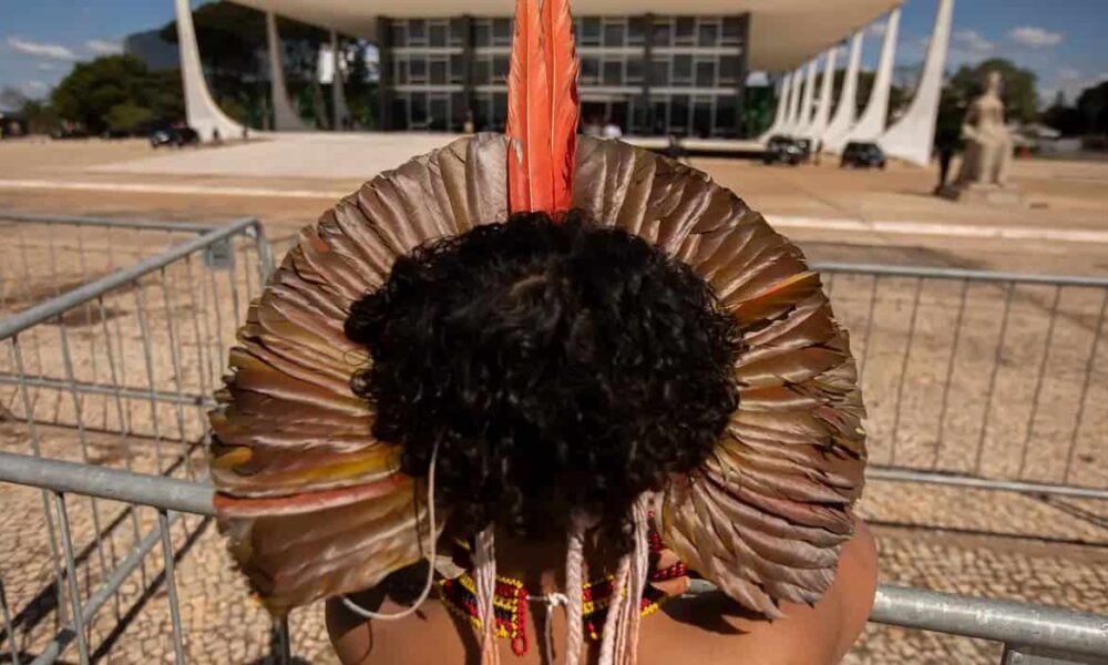 Indígenas protestam no STF contra o marco temporal e exigem reconhecimento de direitos