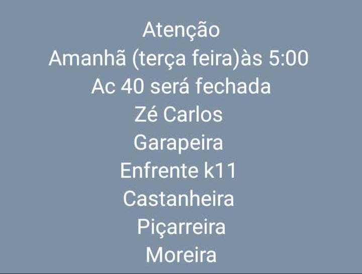 Manifestantes decidiram encerrar o bloqueio na Rodovia AC-40, que durou mais de 13 horas, mas já anunciaram um novo protesto para esta terça-feira. A decisão veio após os manifestantes organizarem um churrasco às margens da estrada, como forma de demonstrar sua insatisfação. Os moradores do bairro Benfica, especialmente no ramal K-11, reclamam da falta de melhorias há anos e exigem a presença de representantes da Prefeitura de Rio Branco para dialogar sobre o problema.