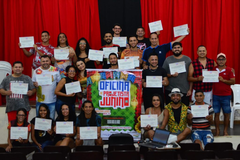 Representantes de noves quadrilhas juninas participaram da Oficina de Projetista Junino, realizada no Centro Cultural Thaumaturgo Filho, localizado no bairro Manoel Julião, em Rio Branco (AC). A ação encerrou-se no sábado, 2, com a entrega de certificados aos participantes.