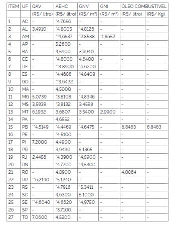 A Confaz (Conselho Nacional de Política Fazendária, divulgou nesta terça-feira, 25, a tabela nacional com o preço médio ponderado ao consumidor final (PMPF) de combustíveis no Brasil.