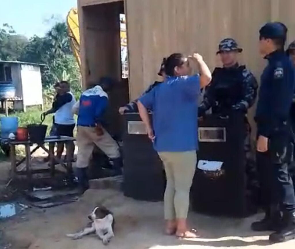 Uma família composta por uma mãe e quatro filhos foi retirada de um terreno por meio de cumprimento judicial. Em um vídeo, a mulher, que não teve o nome identificado, filma a situação e diz que está sendo tratada como bandida.