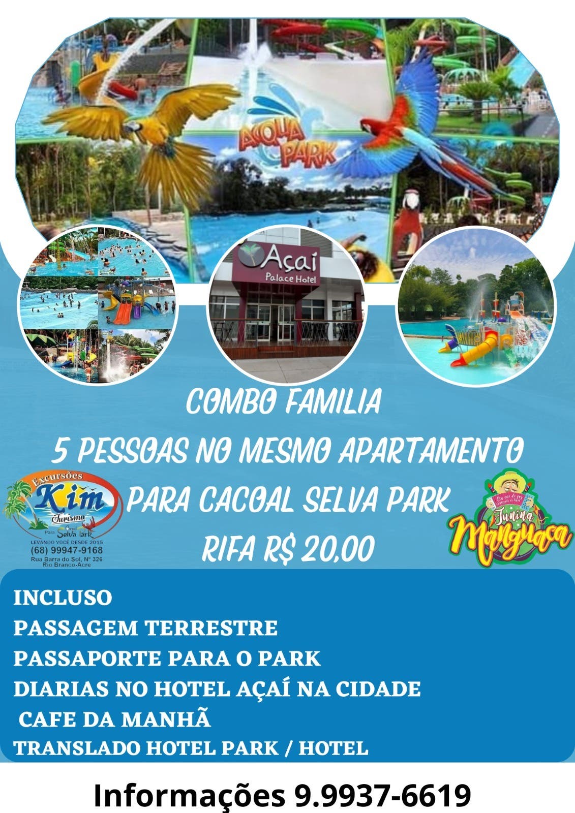 A quadrilha Junina Manguaça, do município de Sena Madureira (AC), em parceria com a Excursões Kim turismo, está realizando uma rifa para uma viagem combo família para Cacoal Selva Park, em Rondônia. Cada bilhete custa RS 20,00.