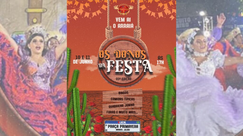 A quadrilha Junina Pega-Pega realizará, nos próximos dias 10 e 11 de junho, na Praça Primavera, localizada no bairro Manoel Julião, a partir das 18h, a terceira edição do arraial “Os Donos da Festa”.