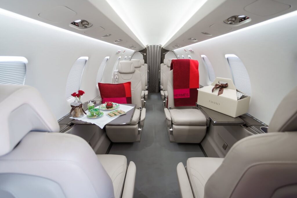 Durante o voo, o serviço é conduzido com discrição e sofisticação. As refeições são personalizadas de acordo com as preferências do cliente, com opções que vão de saladas e pratos quentes a sobremesas e bebidas. A bordo, as aeronaves contam ainda com sistema de som e playlists exclusivas para tornar o trajeto ainda mais agradável.
