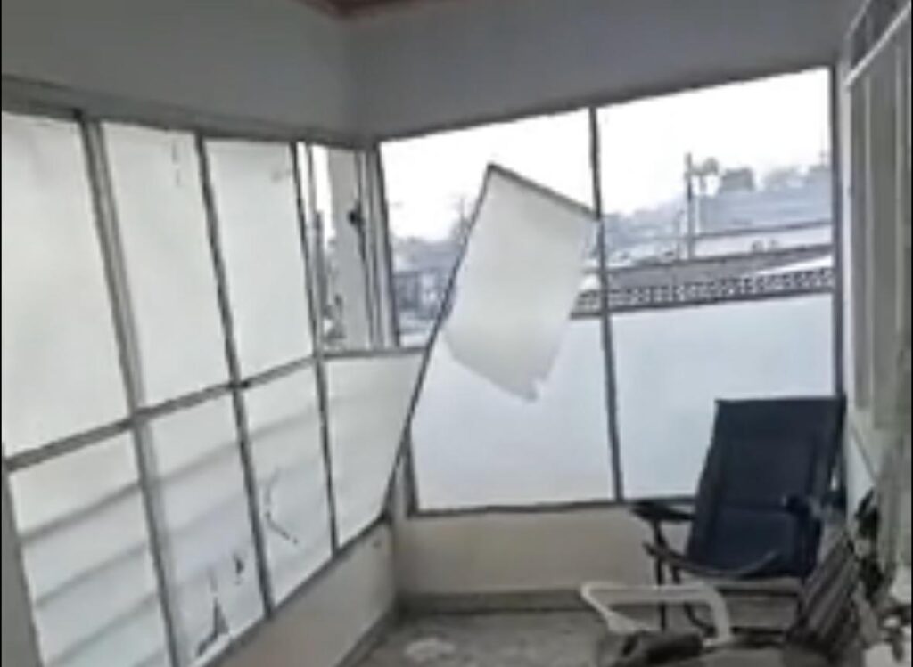 Na região Central do município, na rua Major João Câncio, um imóvel de dois pisos teve os vidros quebrados e ainda houve a queda de um poste de iluminação pública.