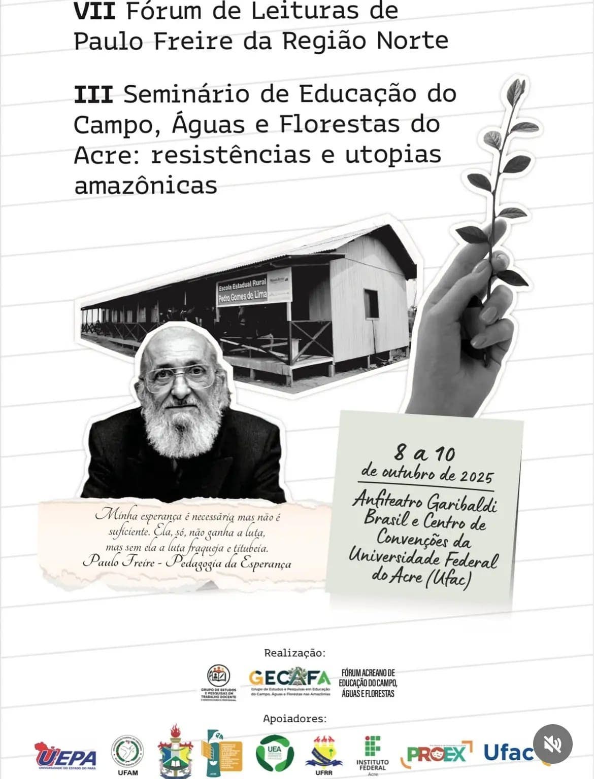 Rio Branco, AC – A Universidade Federal do Acre (UFAC) se prepara para sediar um evento significativo que promete unir reflexão, resistência e utopia no coração da Amazônia. Entre os dias 8 e 10 de outubro de 2025, a instituição será palco do VII Fórum de Leituras de Paulo Freire da Região Norte, em conjunto com o III Seminário de Educação do Campo, Águas e Florestas do Acre. As atividades ocorrerão no Anfiteatro Garibaldi Brasil e no Centro de Convenções da UFAC.