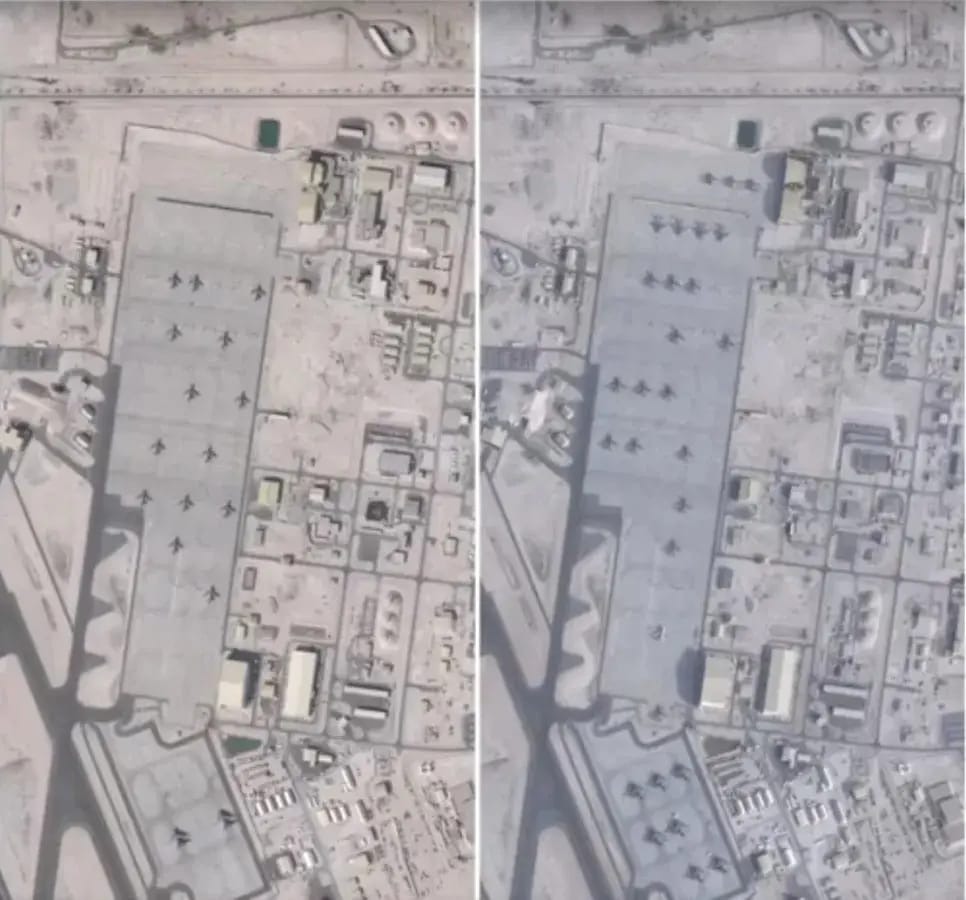 -Outras bases: Na Arábia Saudita (Príncipe Sultan), imagens de fevereiro mostraram um C-5 Galaxy e um C-17, enquanto em dezembro havia cinco aeronaves similares a C-130. Em Diego Garcia, foram registradas sete aeronaves a mais em 6 de fevereiro do que em 31 de janeiro. Já na base de Dukhan, em Omã, houve aumento no número de equipamentos entre 25 de janeiro e 10 de fevereiro.