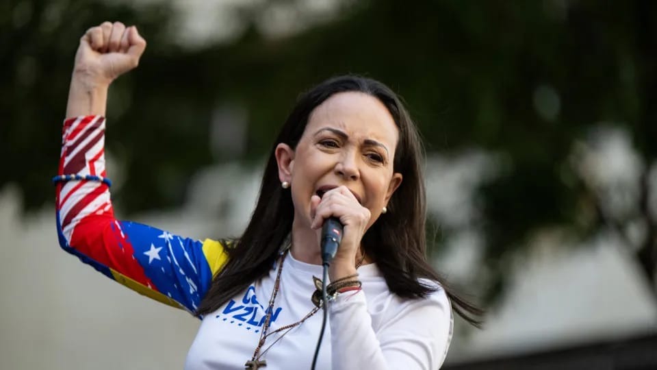 María Corina Machado, que celebrou o prêmio com surpresa, coordenou a campanha de Edmundo González à Presidência da Venezuela no ano passado, após ser considerada inelegível em um processo liderado por aliados do regime de Nicolás Maduro.