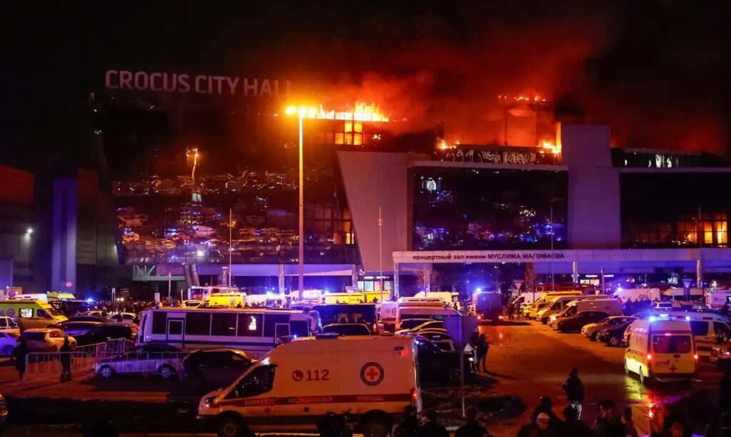 Pelo menos 40 pessoas morreram e mais de 100 ficaram feridas quando cinco homens armados vestindo roupas camufladas abriram fogo com armas automáticas contra pessoas na casa de shows Crocus City Hall, perto de Moscou, em um dos piores ataques na Rússia em anos.