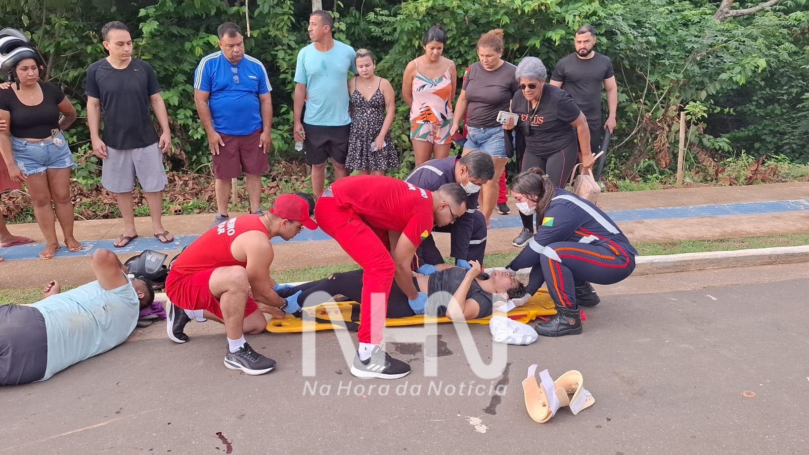 Na motocicleta estavam Luis Ricardo Sousa Siqueira, de 37 anos, e Juliana Santos da Silva, de 38 anos. Luis sofreu escoriações pelo corpo, uma laceração na perna direita e relatava dores na região torácica. Já Juliana apresentava suspeita de fratura na perna direita, deformidade no braço direito e diversas escoriações, exigindo maior atenção da equipe de socorristas.
