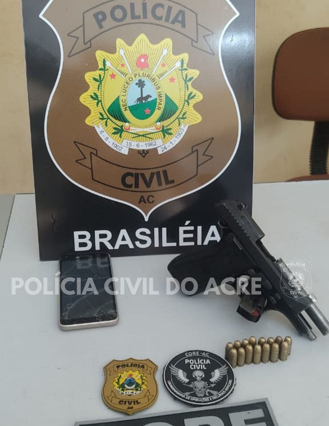 A investigação da Polícia Civil foi possível chegar até o menor de 17 anos, que estava em casa na companhia de filhos, quando foi surpreendido em posse de uma pistola 9mm municiada que teria sido usada no crime.