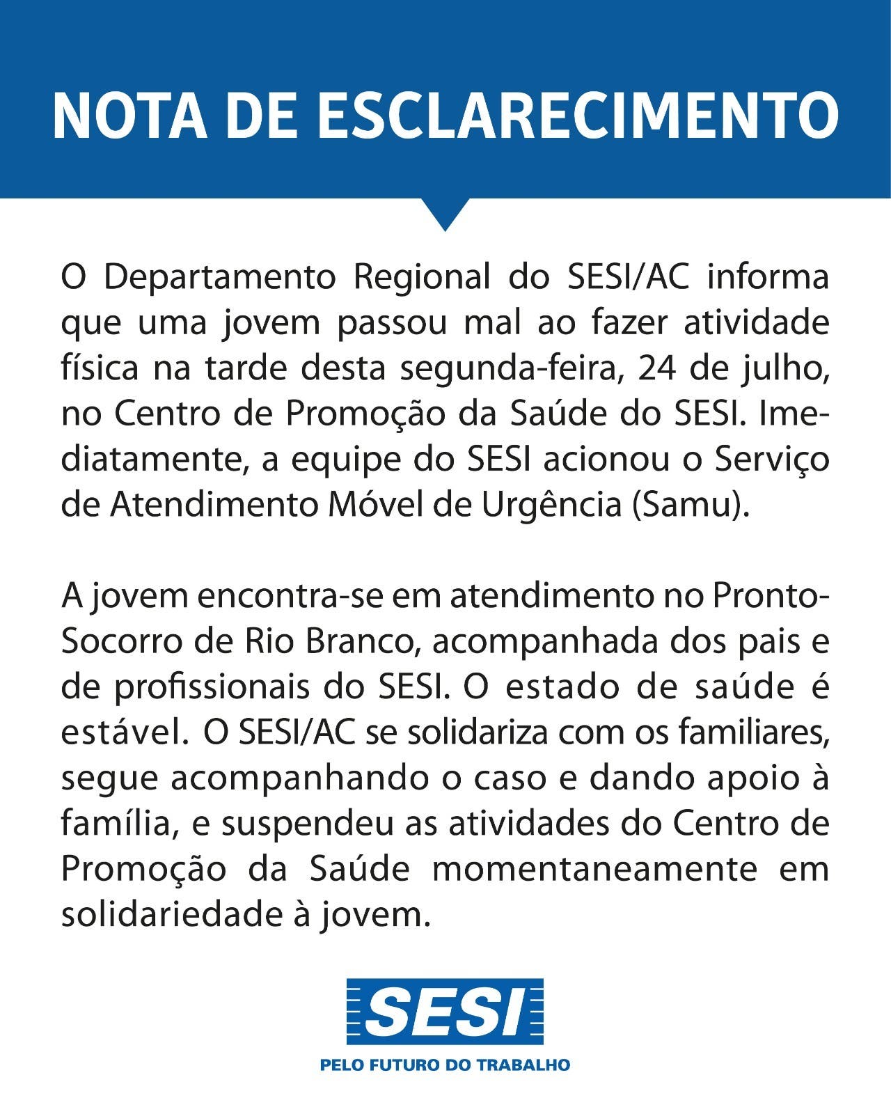 O Departamento do Sesi emitiu a nota acerca do acontecimento.