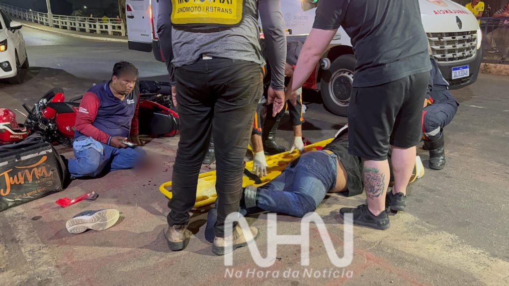 O motociclista Vicente Vieira da Silva, 40 anos, e o pedestre Fernando Barbosa Siã, ficaram feridos após um acidente na noite desta terça-feira (27), na rua Marechal Deodoro, na cabeceira da Ponte Coronel Sebastião Dantas, na região central de Rio Branco.