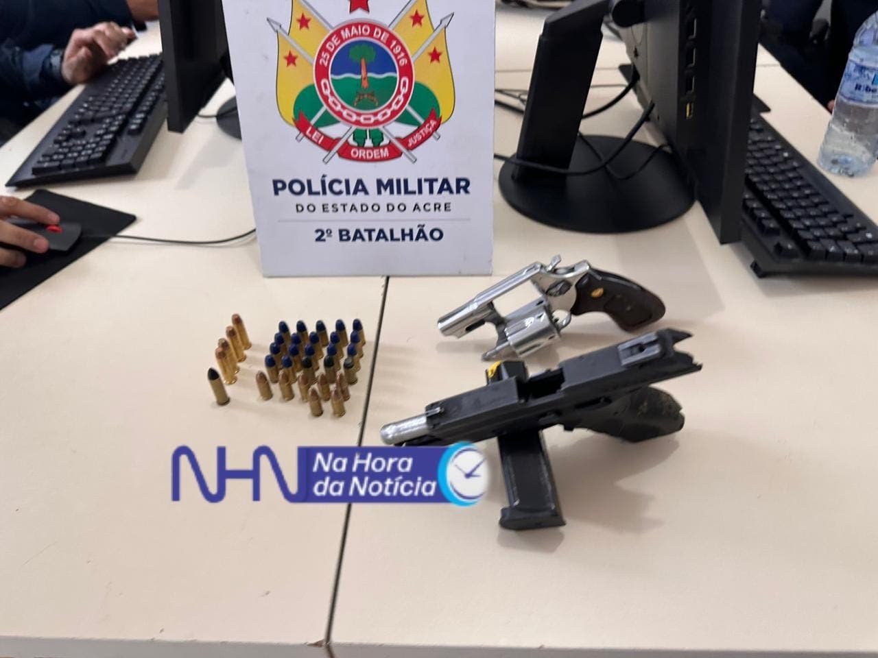 Francisco Mário da Silva Ribeiro, 21 anos, foi preso e Iranildo Lima de Oliveira, 20, foi ferido a tiros e em seguida também foi preso, ambos acusados de porte ilegal de armas de fogo e organização criminosa, na manhã deste sábado (6), na rua Aldeiota, no Loteamento Praia do Amapá, na região do Segundo Distrito de Rio Branco.