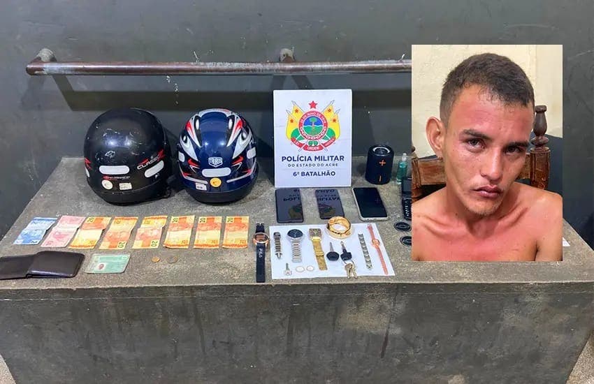 Cruzeiro do Sul, AC – Emerson Lima Silva, de 24 anos, foi preso pela Polícia Militar neste domingo (26) após realizar um assalto em uma residência no Bairro João Alves, onde manteve uma família refém. Silva confessou o roubo de uma motocicleta, joias e diversos outros itens.
