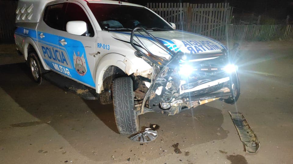 Após a troca de tiros, a perseguição continuou e os bandidos foram para o bairro São Francisco. No final de uma ladeira, uma guarnição do 3° Batalhão foi dar apoio à operação e tentou parar os criminosos, que acabaram batendo na frente da viatura, colidiram em uma coluna e derrubaram o portão de uma empresa.