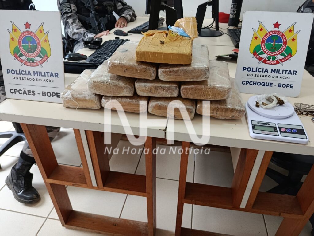 Policiais militares do Batalhão de Operações Especiais (Bope), por meio das equipes do CPChoque e da CPCães, prenderam, na tarde desta segunda-feira (28), Nailton Miranda Régio, suspeito de tráfico de drogas no bairro Vitória, em Rio Branco. Na ação, mais de 10 quilos de entorpecentes foram apreendidos.