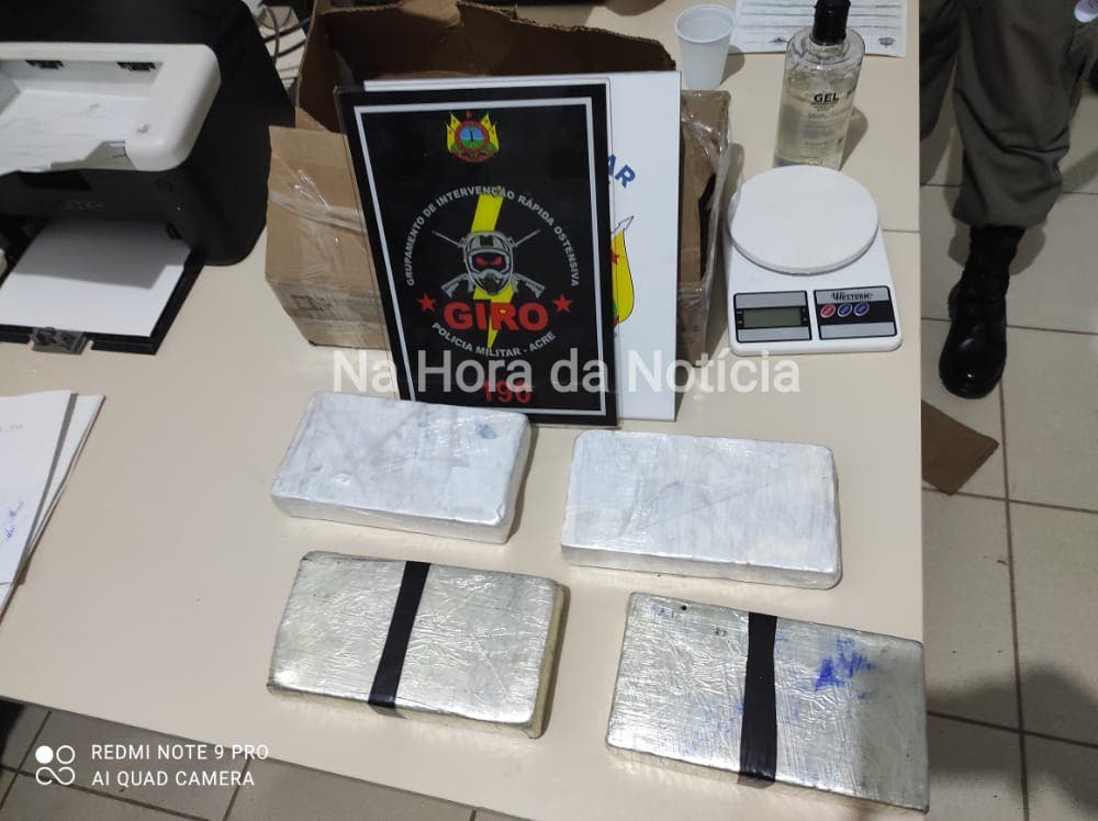 Na revista do veículo, foram encontradas 4 barras de cocaína. Ainda segundo o homem preso, ele estava aguardando um traficante para entregar a droga.
