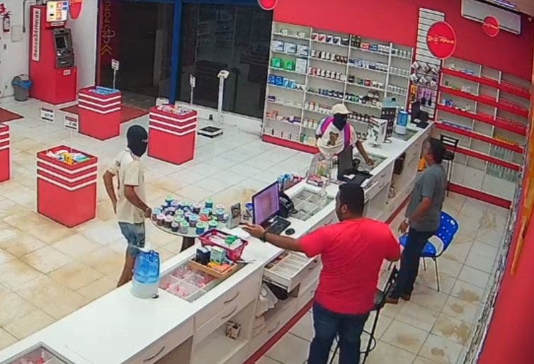 Imagens de câmeras de segurança registraram o assalto ocorrido na noite desta quinta-feira (13) em uma farmácia localizada na Avenida Amadeu Barbosa, no Segundo Distrito de Rio Branco. O vídeo mostra o momento em que homens armados entram rapidamente no estabelecimento, rendem os funcionários e vasculham o balcão antes de fugirem levando dinheiro do caixa, carteiras e celulares das vítimas.