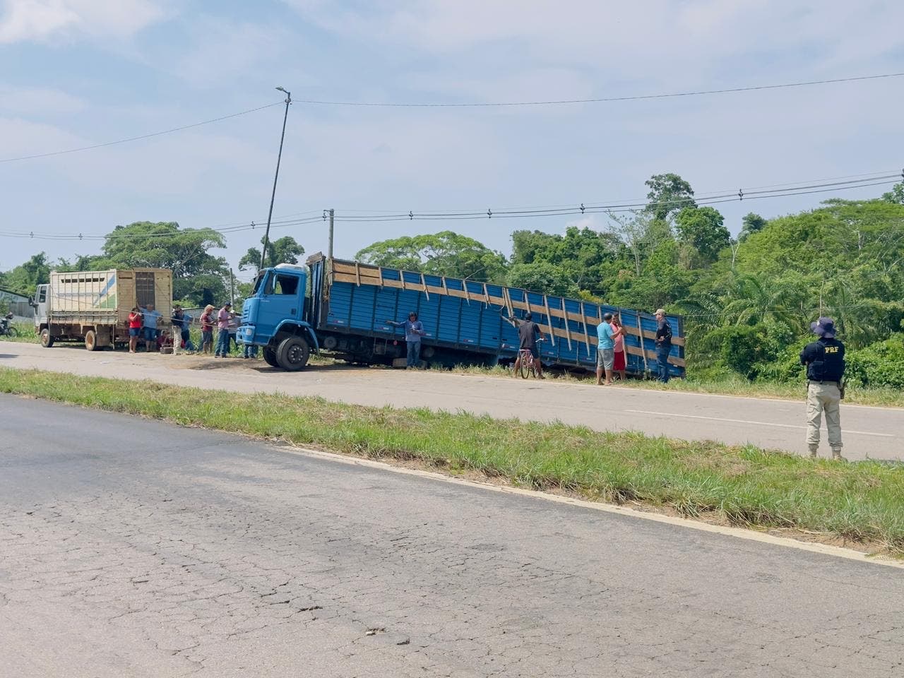Equipes da Polícia Rodoviária Federal (PRF) foram acionadas para atender a ocorrência, controlar o tráfego e garantir a segurança na via. O trânsito ficou parcialmente interrompido até a retirada do caminhão e a liberação completa da pista.