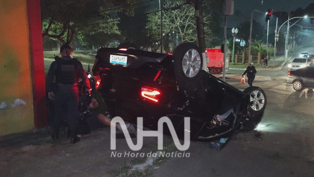 O policial militar Diego Conceição de Araújo, 36 anos, ficou ferido após uma colisão entre dois veículos, na noite desta sexta-feira (20), no cruzamento das ruas José de Melo com a Via Parque, no bairro Bosque, em Rio Branco.
