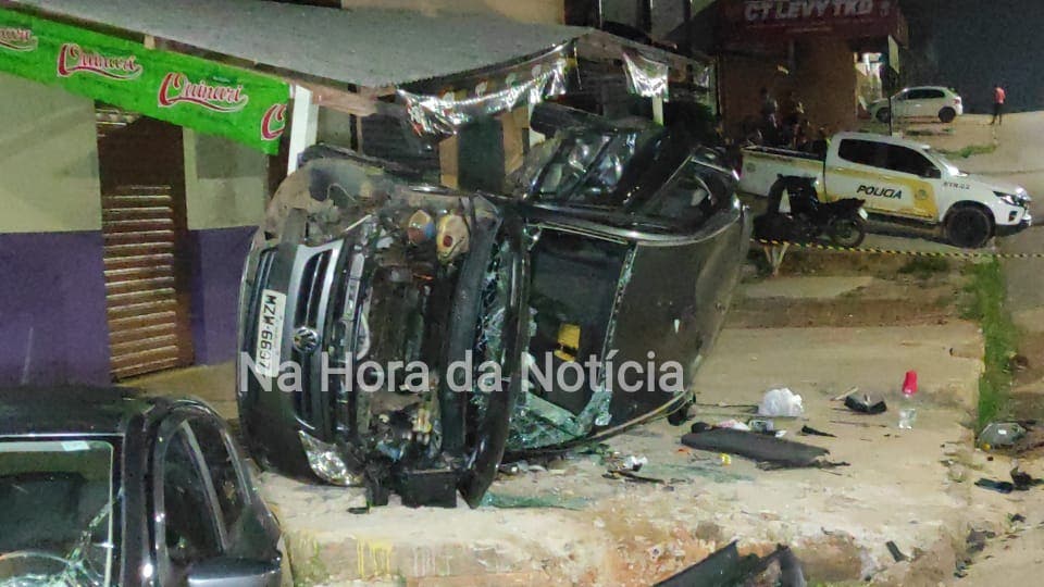 Carro capota após colisão e duas pessoas ficam feridas em Rio Branco; vídeo mostra acidente