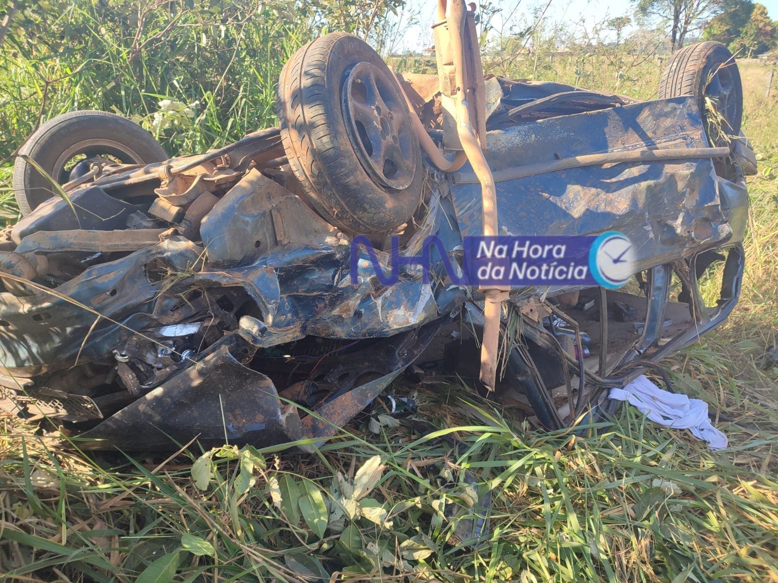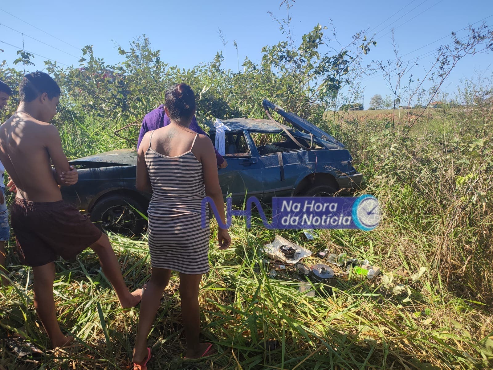 Carro com nove pessoas bate em buraco, perde controle e capota em Rio Branco