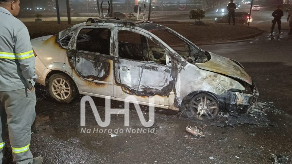Um carro modelo Ford Fiesta Sedan, de cor prata e placa NAA-2590, foi destruído por um incêndio na noite desta terça-feira (27), na rotatória de um centro universitário na BR-364, no bairro Jardim Europa, em Rio Branco.
